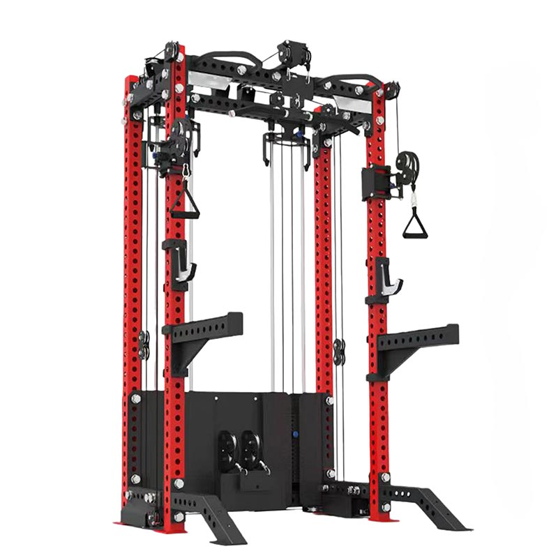 الملحقات المتكاملة: يشتمل الإطار على محطة سحب قابلة لضبط الارتفاع (مقبض متعدد)، وخطافات لتدريب الساق،